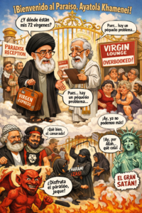 Quizás la respuesta no esté en el cielo sino en la tierra: el enemigo común une más que cualquier credo. Tal vez el amor compartido no sea por la divinidad, sino por el odio a Occidente, especialmente a ese caricaturizado “Gran Satán”. O quizá —con humor negro mediante— algunos simplemente disfrutan de ver cómo la policía de la fe administra látigos pedagógicos a mujeres cuyo crimen es dejar que el viento toque su cabello.