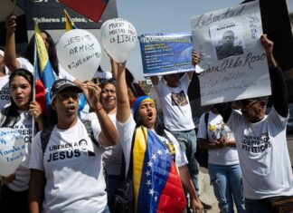 En el acto estuvieron presentes los familiares de los presos de la conocida como Operación Gedeón, una fallida incursión de militares y voluntarios organizada desde el exterior en 2020 que buscaba derrocar a Maduro. Exigían saber no ya cómo están sus familiares o si reciben las medicinas que ellos les envían. Meramente aspiraban a confirmar si estaban vivos. “Fe de vida, Gedeón”, clamaban. Mostraban una gran pancarta con las fotos de algunos de los prisioneros y denunciaban las terribles condiciones en el Fuerte Guaicaipuro, una temida cárcel militar de máxima seguridad.