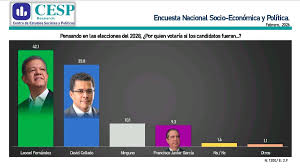 En un escenario electoral proyectado hacia 2028, el expresidente Leonel Fernández encabeza la intención de voto con alrededor de 42 %, colocándose al frente de la carrera temprana.