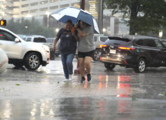 En Katy, Texas, una ciudad del oeste de Houston, el agua turbia y marrón inundó un barrio residencial y los árboles se balancearon furiosamente bajo los vientos huracanados.El sistema de tormentas también azotó Luisiana y otros estados de la costa del Golfo, dejándolos sin electricidad el viernes por la mañana.