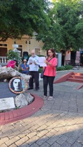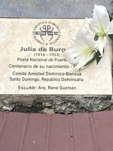 Ayer, 17 de febrero de 2024, la poeta Chiqui Vicioso junto a un grupo de amigos: Luis Carvajal y Nexcy De León, Ramón Colombo, Maribel Núñez, Amarilis Cueto, poeta y narradora quien ha compartido las fotografías de tan entrañable acto a quien damos las mas expresivas gracias y a todos los que honraron su memoria y colocaron sobre el pedestal del busto flores y declamaron poesía para re-confirmar el gran amor y el agradecimiento de nuestra patria a Julia de Burgos, puertorriqueña universal que trazó nuevos rumbos a la vida de las mujeres con su poesía íntima reveladora de los más nobles sentimientos de justicia social y también de erotismo junto a las inmensas Juana de Ibarborou, Alfonsina Storni y Delmira Agustini, quienes elevaron su grito de liberación de la mujer que estaba asfixiada por el peso de prejuicios anacrónicos y de la imagen angelical que los románticos le impusieron. El erotismo de Julia no tiene nada que ver con pornografia ni morbosidad es un reconocimiento a la vida.