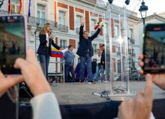 La breve aparición de González ha dejado con ganas de más a algunos de los miles de seguidores que colmaban el centro de la plaza. Jocelyn, venezolana de 43 años, había acudido a la Puerta del Sol con su pareja, Alejandro, madrileño de 45. Ella llegó en 2018 a España, después de que el Gobierno venezolano, recuerda, iniciara una férrea persecución a funcionarios públicos que no eran afectos a la causa. “Llegué con una maleta de 23 kilos llena de sueños”, afirma. En territorio español, como miles de mujeres latinoamericanas, ha trabajado en el servicio doméstico como interna. Después de las elecciones de julio, Jocelyn y Alejandro viajaron a Venezuela a visitar a la familia de ella, donde pasaron unos pocos días. La transición, espera, le permitiría visitar con más frecuencia a sus familiares.