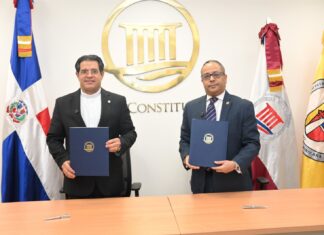 SANTO DOMINGO. El Tribunal Constitucional (TC) y la Pontificia Universidad Católica Madre y Maestra (PUCMM) firmaron este miércoles la renovación de un acuerdo de colaboración mediante el cual se comprometen a promover los valores de la Constitución y contribuir al fortalecimiento de la justicia constitucional a través de actividades conjuntas que coadyuven a la construcción de un Estado constitucional y democrático de derecho basado en los pilares establecidos en la Constitución de la República.