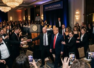 WASHINGTON D.C. – La noche de este sábado 25 de abril de 2026, lo que debía ser una gala de diplomacia y periodismo se transformó en una escena de caos. El presidente Donald Trump, la Primera Dama Melania Trump y el vicepresidente JD Vance fueron evacuados de emergencia de la Cena de la Asociación de Corresponsales de la Casa Blanca (WHCA) tras registrarse múltiples disparos en las inmediaciones del salón principal.