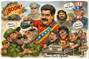 Dicho régimen ha provocado una de las crisis humanitarias más severas de la historia latinoamericana reciente, caracterizada por el colapso institucional, la destrucción del aparato productivo y el éxodo de millones de ciudadanos. Se estima que más de ocho millones de venezolanos han abandonado su país en busca de condiciones mínimas de vida, fenómeno que no puede ser explicado como un simple efecto secundario de un proyecto político, sino como la consecuencia estructural de un modelo fallido.