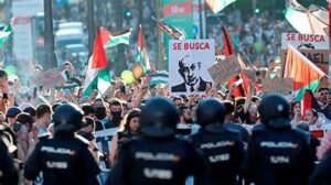 En Figueres, un pueblecito catalán –Nordeste de España- un grupo de esos y esas voluntarias contra el genocidio, invadió la carretera con una pancarta que decía Fuera Israel por genocida; era la contrarreloj por equipos y pensaban parar sólo al equipo israelí. La policía los arrastró arremetiendo con su moto a la pancarta y el equipo se vio obligado a parar.