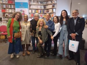 En la foto adjunta aparece junto a Ana María Céspedes y Daniel Tejada, representantes de ACUDEBI- Asociación Cultural de Bibliotecas Dominicanas en España.